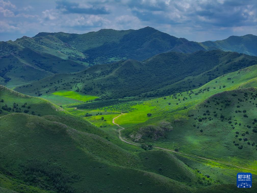 这是8月11日拍摄的内蒙古通辽市扎鲁特山地草原美景(无人机照片)。