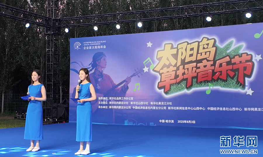 太阳岛草坪音乐节现场,主持人作介绍。新华网发(赵嘉伟 摄)