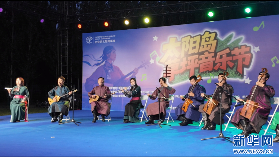 太阳岛草坪音乐节现场,歌手哈斯额日德尼演唱《锡林河》。新华网发(王伟 摄)